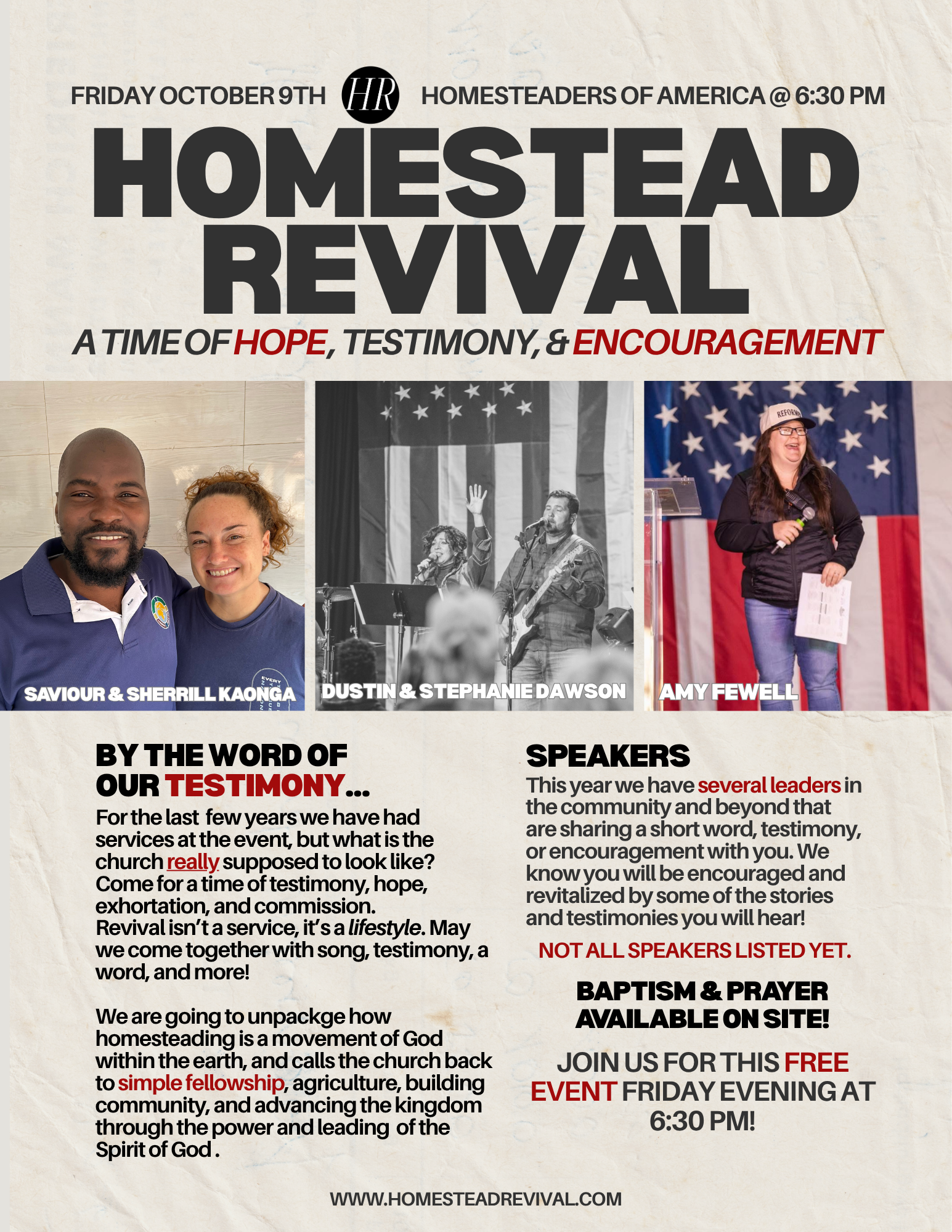 There is a movement happening within the earth, and God is using the back-to-the-land movement to bring about His great plan. From tent meetings to worshipping in the garden, Homestead Revival is happening.